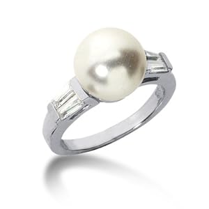 Exclusive 1.7 Ct Diamond Pearl Ring Engagement Round Cut Channel Fashion 14k White Gold. Metal weight 5 grams. The center stone is Pearl weight 1.2 carat Round cut Prong setting. Side stone is Diamond weight 0.5 carat Baguette cut Channel setting.